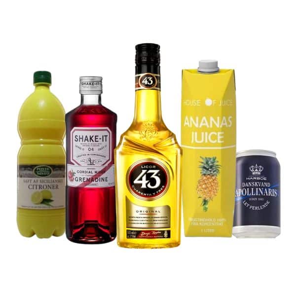 GRENADINE SHAKE – DrinksPakke Denne GRENADINE SHAKE – DrinksPakke er en alternativ version af den ikoniske cocktail med rom i stedet for gin. Med denne pakke kan du lave ca. 17 drinks. Opskrift: 4 cl Licor 43 4 cl Shake-It Mixer Grenadine 4 cl friskpresse